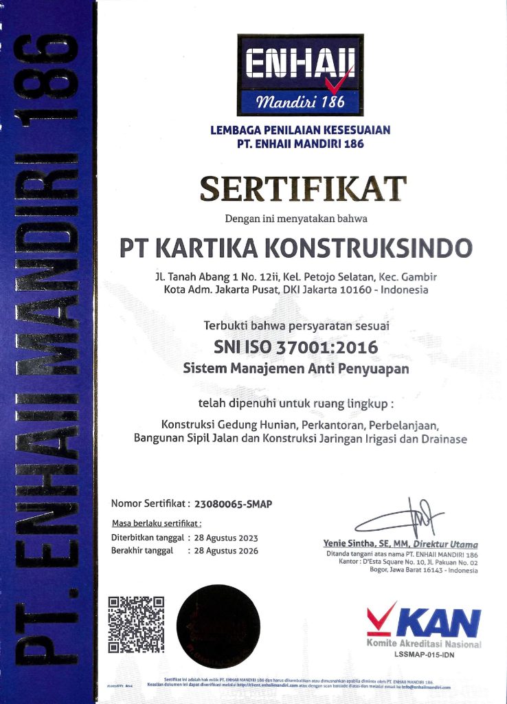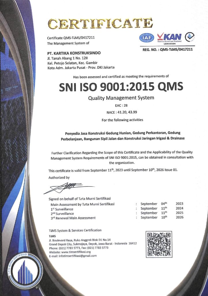 PT Kartika Konstruksindo adalah perusahaan kontraktor yang telah tumbuh dan berkembang selama lebih dari 18 tahun di industri konstruksi.